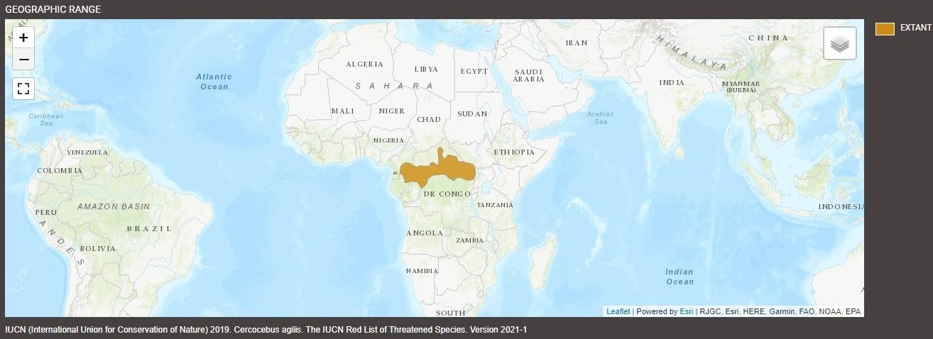 Agile mangabey range, IUCN 2025