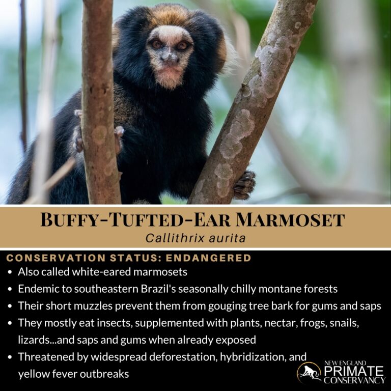 A yellow fever outbreak from 2016 to 2017 also imperiled the species, with over 250 confirmed cases of infection (though the actual number is probably much higher)