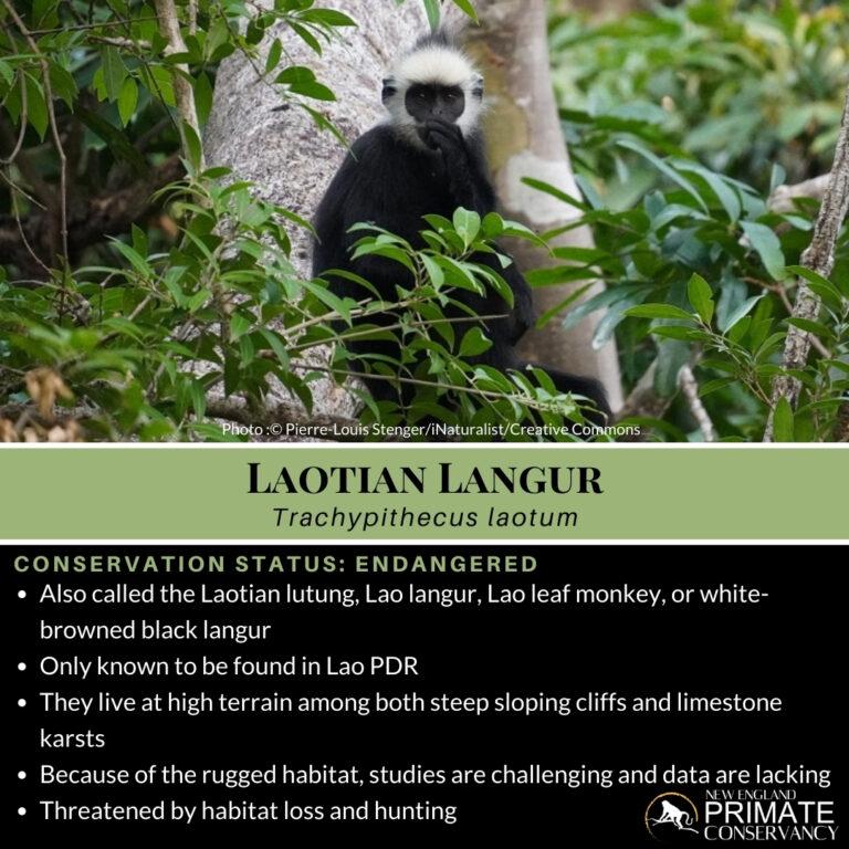 The International Union for Conservation of Nature lists the Laotian langur as Endangered (IUCN, 2015), appearing on the IUCN Red List of Threatened Species.