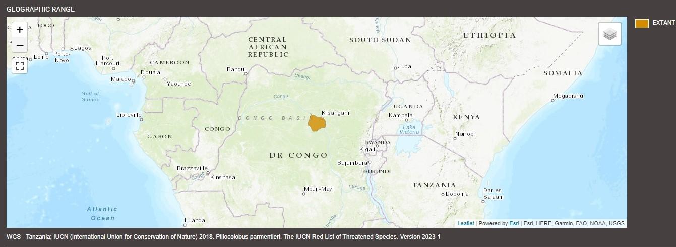Lomami red colobus range, IUCN 2023