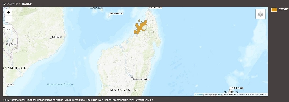 Northern giant mouse lemur range, IUCN 2025