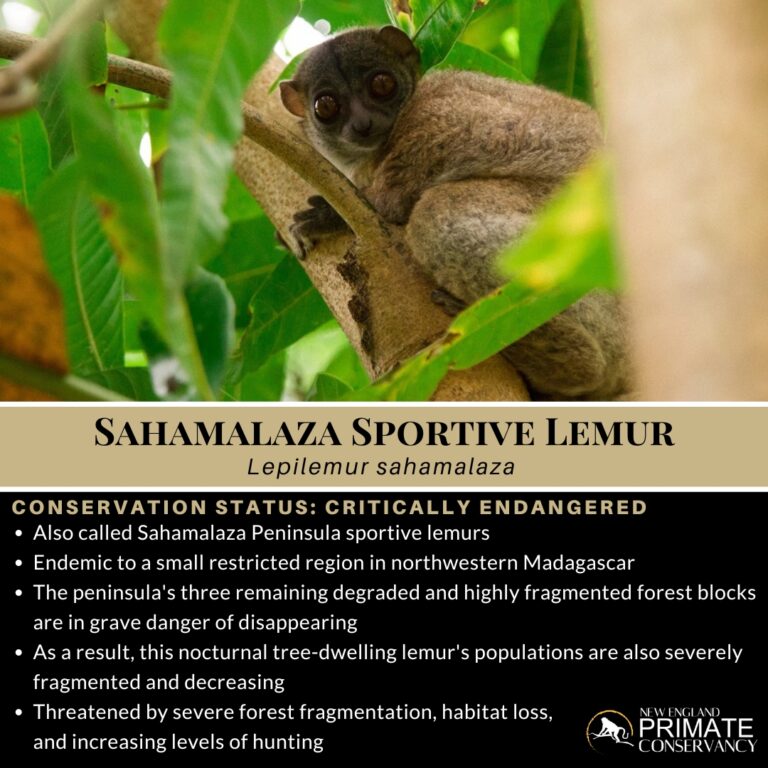 The Sahamalaza sportive lemur is listed in Appendix I of the Convention on International Trade in Endangered Species (CITES), an international agreement between governments whose goal is to ensure that international trade in specimens of wild animals and plants does not threaten their survival.