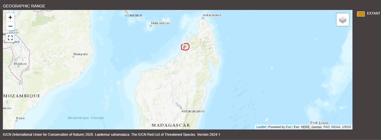 The International Union for Conservation of Nature lists the Sahamalaza sportive lemur as Critically Endangered (IUCN, 2020), appearing on the IUCN Red List of Threatened Species.
