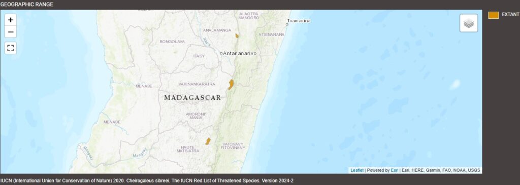 The Sibree’s dwarf lemur is classified as Critically Endangered by the International Union for Conservation of Nature (IUCN, 2018) and appears on the IUCN Red List of Threatened Species.