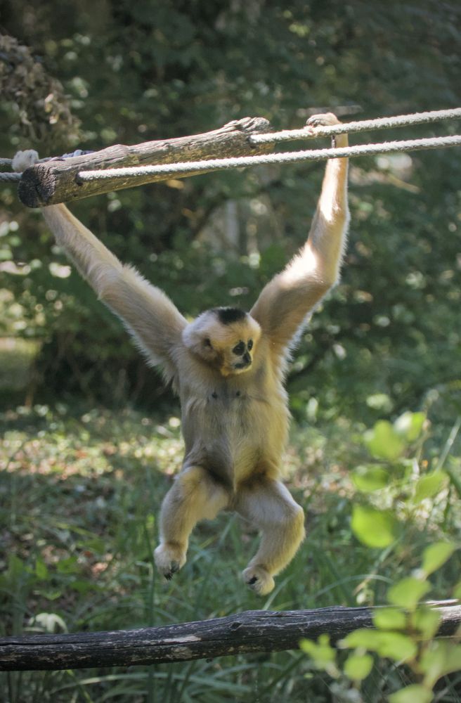 Gibbons look similar to monkeys, but they are actually apes. Just like other apes such as bonobos, chimps, gorillas, and orangutans, they lack tails. However, compared to other apes, gibbons are remarkably small, which is necessary since they spend their entire lives in the canopy. The only other apes who spend a significant amount of time in trees are orangutans.