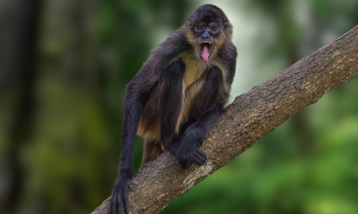 Spider monkeys are named for their exceptionally long limbs and relatively small bodies, which give them a spider-like appearance as they hang from trees or move through the canopy.